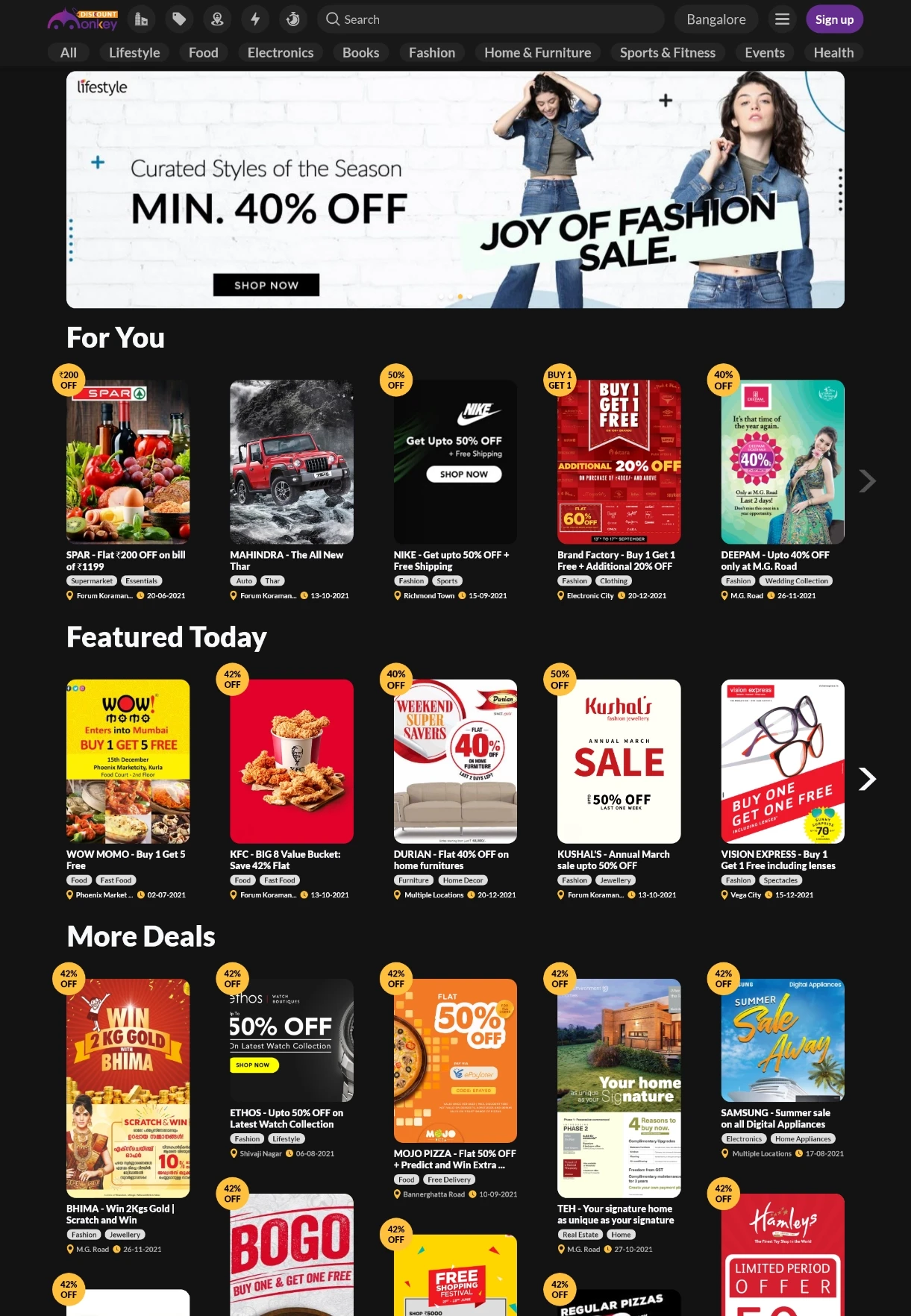 The DiskountMonkey project aimed to re-design the existing website, focusing on user experience improvements and mobile responsiveness. The primary goal was to create a modern, engaging, and scalable platform that would cater to users searching for deals and offers in Singapore and major metro cities in India.