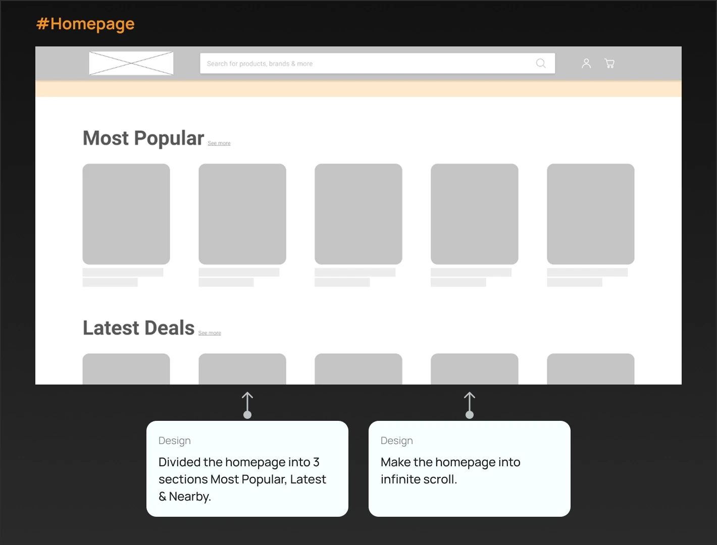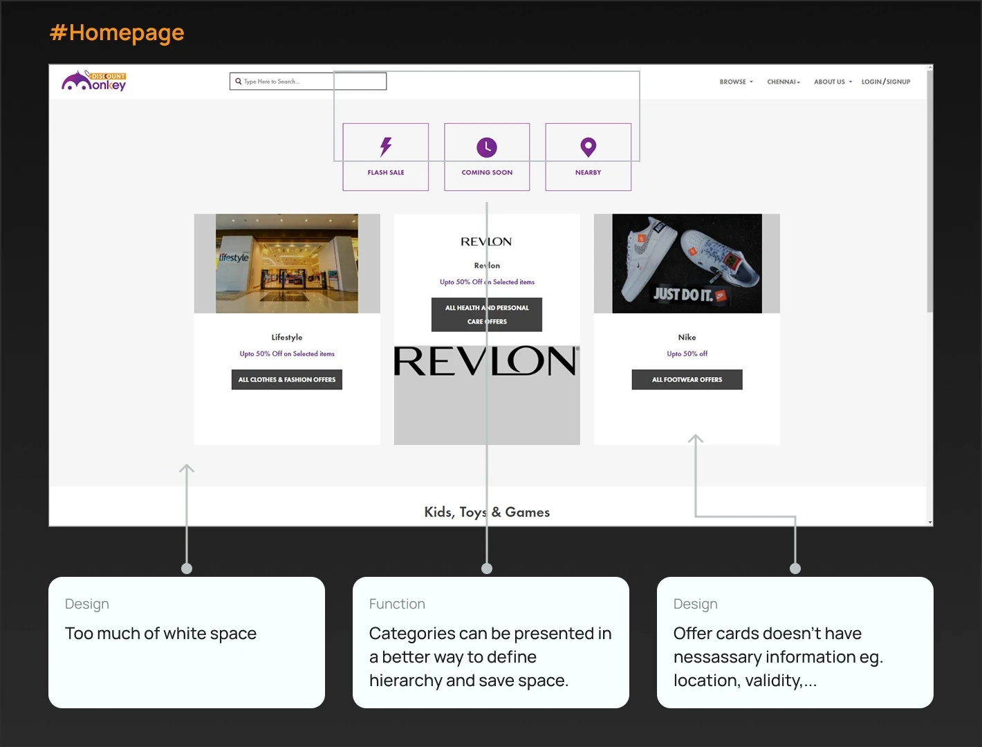 I redesigned their entire website from scratch, introducing filters and categories on the homepage to enhance the user experience. I also added new pages like Mall Wall and Nearby to promote local shopping and help users easily discover deals. This resulted in 500+ brands signing up with us.